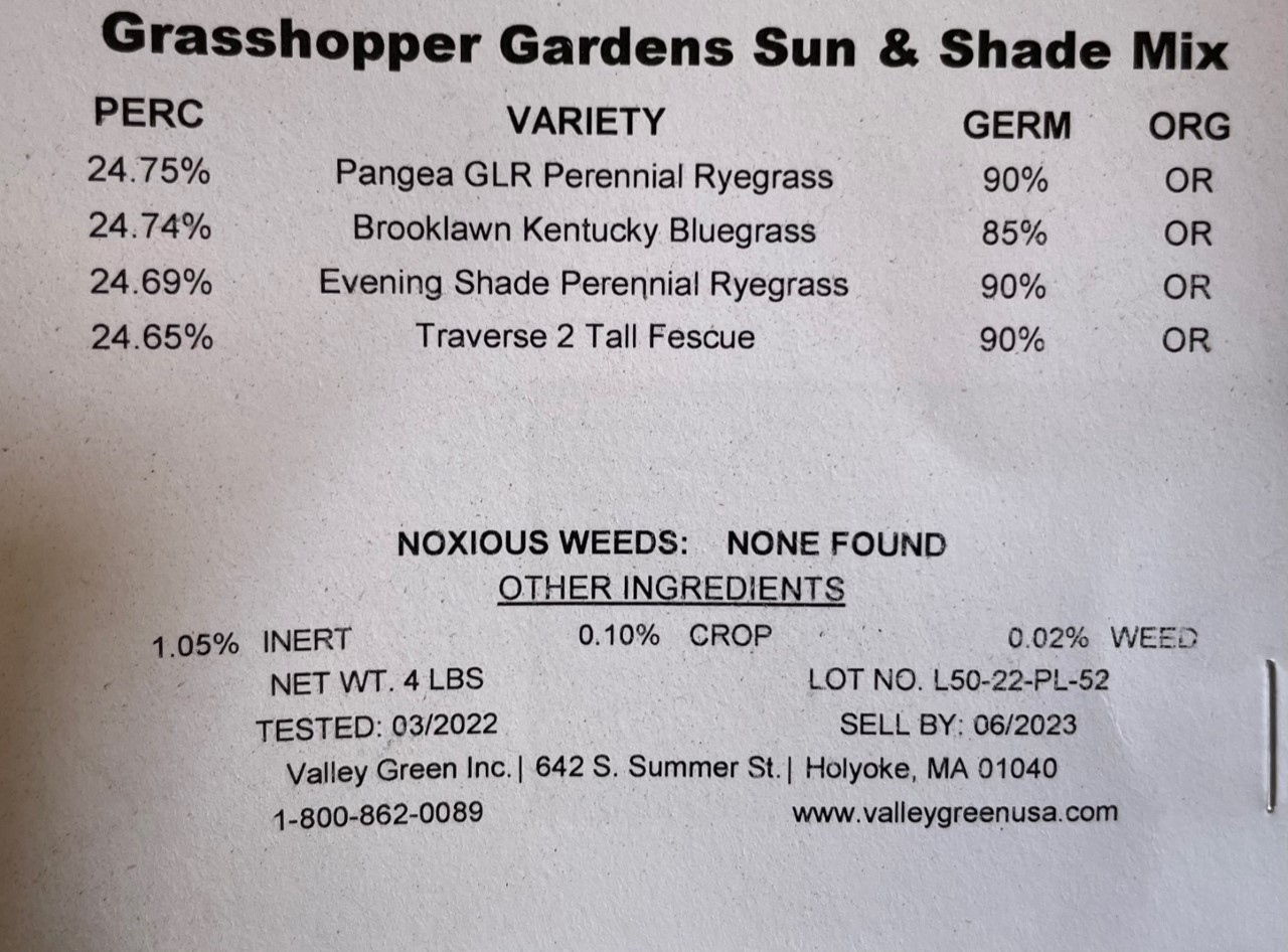 Grasshopper Gardens Sun & Shade Mix – Grass Seed – 5 lb Bag