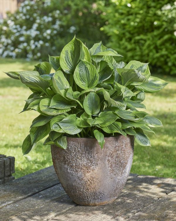 Green Patriot Hosta is a new variety. This is a variegated green on the green Hosta. Leaves are dark green in the middle and lighter green on the outside. Quick growing and grows well in clumps. Plant in mass grouping for a more dramatic display.