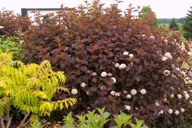 Diabolo Ninebark is selected for its beautiful red-purple foliage on long arching canes. Forms a beautiful rounded mound of foliage and, even though it gets quite tall, can be controlled by cutting branches back to the ground each spring. Blooms in spring with creamy-white flowers that contrast nicely against the dark foliage. Plant in full sun for best foliage color.