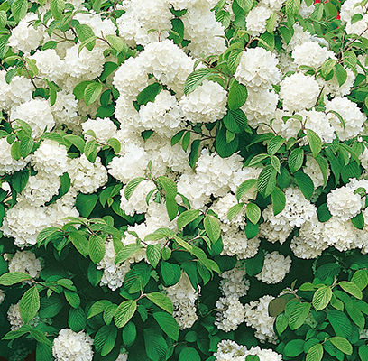 Newport Doublefile Viburnum is a compact selection with showy snowball-like clusters in spring. Small, thick-quilted deep green foliage throughout summer, turns to burgundy in fall. Makes a nice hedge or accent plant.