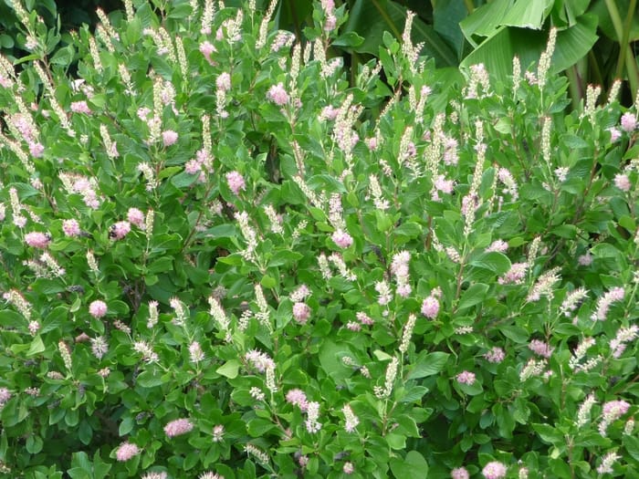 Ruby Spice Summersweet is a cultivar selected for vastly improved bright pink flowers that do not fade to white. Blooms in midsummer and has nice yellow fall color. Clethra is shade tolerant but will also withstand full sun.