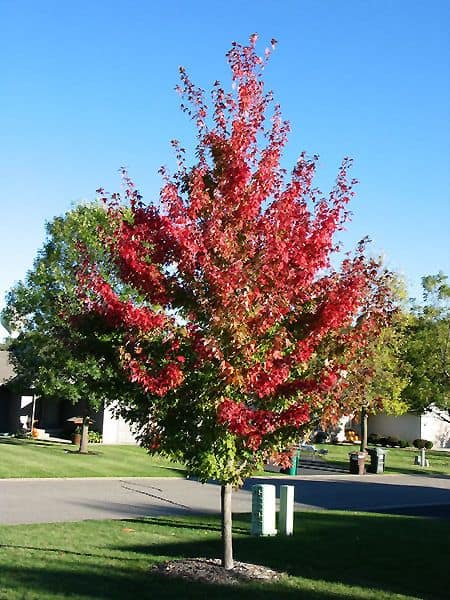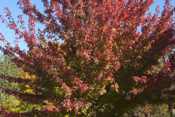 Firefall has an upright-oval form with good branch angles. This selection is male and therefore does not produce nuisance seeds. The foliage is an attractive medium green throughout the summer. Fall color is bright orange to scarlet and develops fairly early. This is a distinct advantage over some existing Freeman maple cultivars that color later and often do not develop much color in northern regions before freezing temperatures cause the foliage to drop.