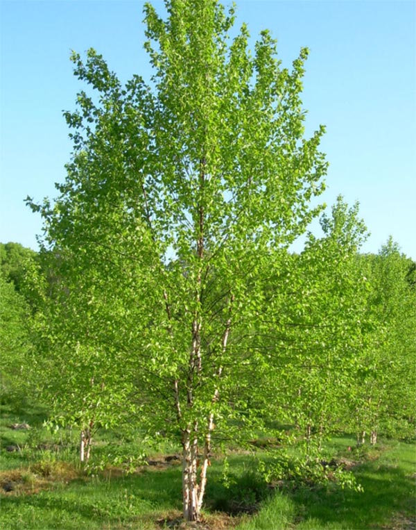 Heritage Birch is a vigorous grower that has exfoliating bark that is lighter than River Birch, ranging from tan to creamy white to parchment white. While it tolerates wet, poorly drained soils, it does well in upland soils, and is resistant to bronze birch borer. Clumps have three or more stems.?